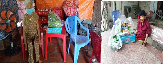 Các cụ già neo đơn được nhận quà hỗ trợ từ mô hình “Bó rau tình nghĩa” của Hội Nông Dân xã Trung Lập Thượng phát động