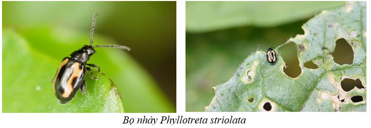 Bọ nhảy có tên khoa học: Phyllotreta striolata; Họ: Chrysomelidae – Bộ: Coleoptera