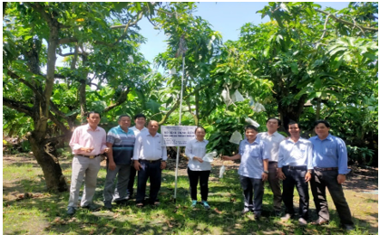 Cán bộ Khuyến nông TP.HCM làm việc tại Mô hình trình diễn thâm canh xoài theo quy trình GAP – huyện Cần Giờ. Ảnh: TTKN