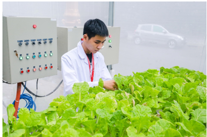 Mô hình trồng rau thủy canh trong nhà màng tại TP.HCM. Ảnh: Q.D