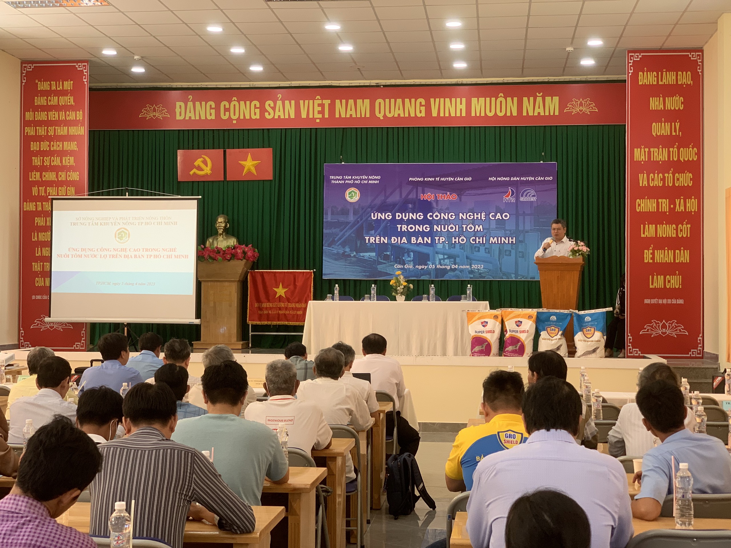 Để tiếp tục đồng hành, hỗ trợ nông dân nuôi tôm trên địa bàn Thành phố, có cơ hội gặp gỡ với các nhà quản lý, các chuyên gia kỹ thuật, cùng nhau trao đổi, chia sẻ kinh nghiệm thực tế về hiệu quả công nghệ mới, là những ưu điểm hỗ trợ đắc lực trong quá trình nuôi tôm; giúp nông dân tham khảo, lựa chọn những công nghệ phù hợp, áp dụng hiệu quả với mô hình thực tế và đặc biệt có thể giải quyết được những khó khăn về chi phí vật tư sản xuất, giá thức ăn tăng cao, ảnh hưởng đến giá thành đầu ra sản phẩm…. Tất cả những lợi ích trên chính là mục đích và ý nghĩa của Hội thảo “Ứng dụng công nghệ cao trong nuôi tôm trên địa bàn TP.HCM năm 2023” do Trung tâm Khuyến nông Thành phố phối hợp với Phòng Kinh tế và Hội Nông dân huyện Cần Giờ tổ chức tại Xã Lý Nhơn, huyện Cần Giờ vào đầu tháng 4/2023, dành cho gần 100 hộ nông dân đã, đang và chuẩn bị có kế hoạch chuyển đổi sản xuất, xây dựng mô hình nuôi tôm trên địa bàn 02 huyện ngoại thành: Nhà Bè và Cần Giờ.