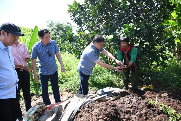 Nông dân sử dụng chất thải chăn nuôi để làm phân bón cho cây trồng