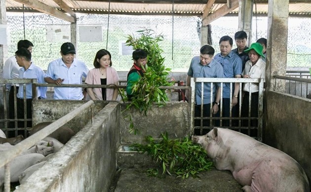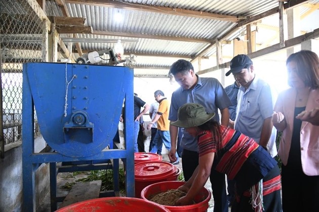 Đoàn nghe chủ mô hình chăn nuôi lợn thịt theo hướng hữu cơ tại Xã Quảng Nhâm, huyện A Lưới, tỉnh Thừa Thiên Huế chia sẻ về kinh nghiệm sản xuất