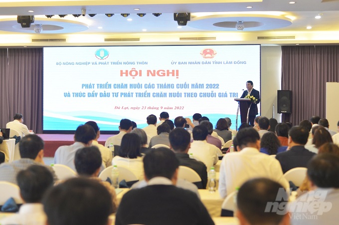Hội nghị Phát triển chăn nuôi các tháng cuối năm 2022 và thúc đẩy đầu tư phát triển chăn nuôi theo chuỗi giá trị được tổ chức tại tỉnh Lâm Đồng sáng 23/9. Ảnh: Minh Hậu.