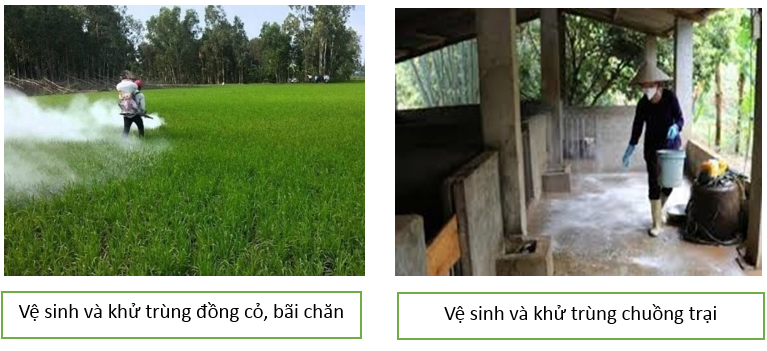 – Vệ sinh, khử trùng chuồng trại, khu vực chăn nuôi.